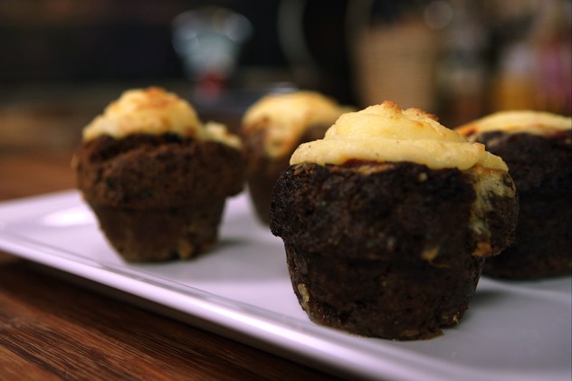 Pişen köftelerin dibinde, üzerine kaşıkla domates sosunu ekleyin. Sonra püreyi istediğiniz şekilde her bir köftenin üstüne krema gibi sıkın.