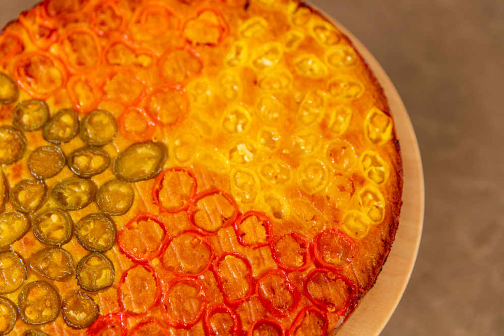Üzerine ince dilimlediğiniz biberleri dizin.