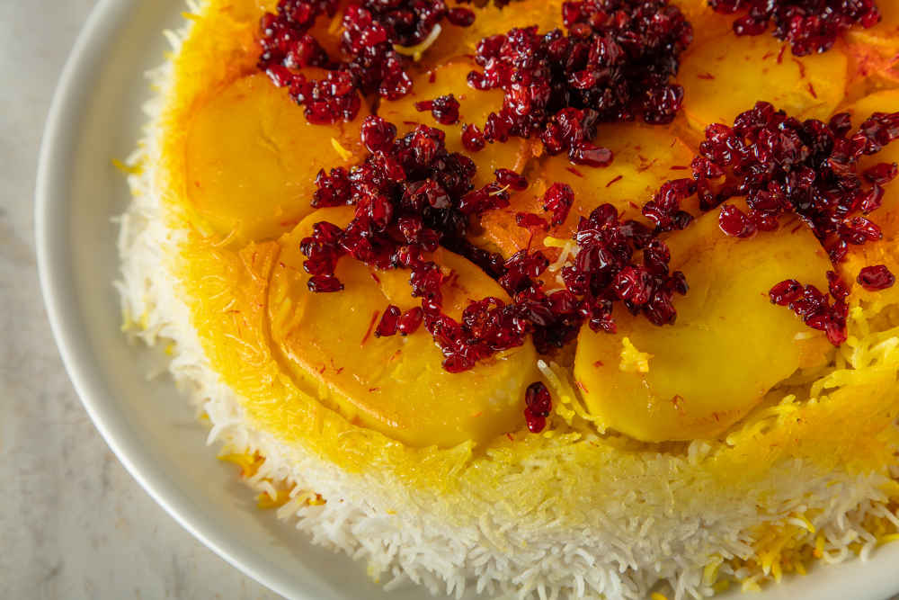 Üzerine zereşk üzümünü ilave edip karıştırın.