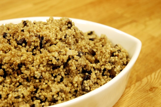 Mantarlar tamamen piştiğinde haşladığınız kinoaları mantarların içerisine alın, iyice harmanlayın.
