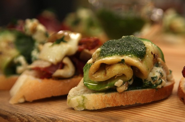 Robotunuz çalışırken zeytinyağını yavaş yavaş dökmeye başlayın. Bütün yağ bitince robotu durdurun ve bir spatula yardımıyla kenarlarda biriken malzemeyi ortaya toplayın. Rende parmesan peynirini koyun ve tekrar karıştırın. Tuz ve karabiberle baharatlandırın.