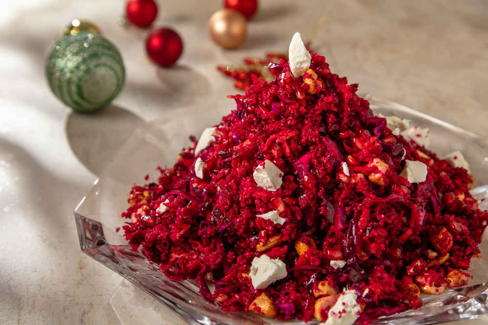 Üzerine rendelenmiş havuç ve rendelenmiş fırınlanmış pancarı ekleyip harmanlayın.