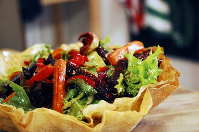Yufkalı Çanak İçinde Sebzeli Salata Malzemeleri