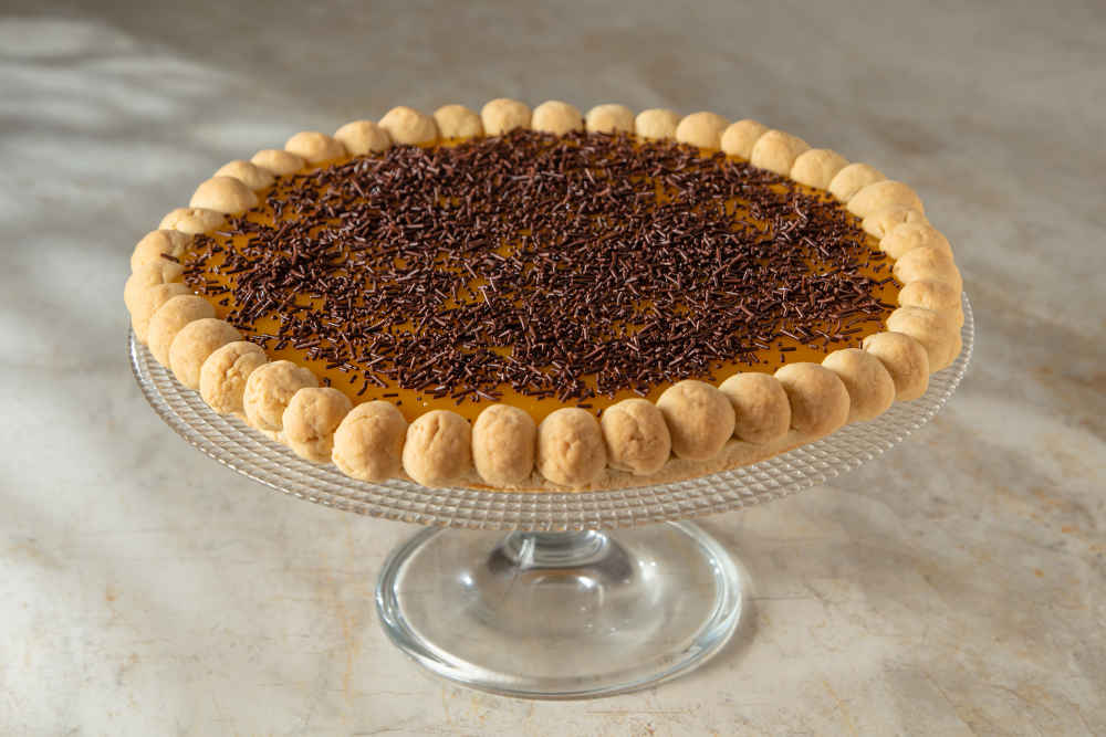 Son olarak üzerine kakaolu pasta süslerini gezdirin ve dilimleyerek servis edin.
