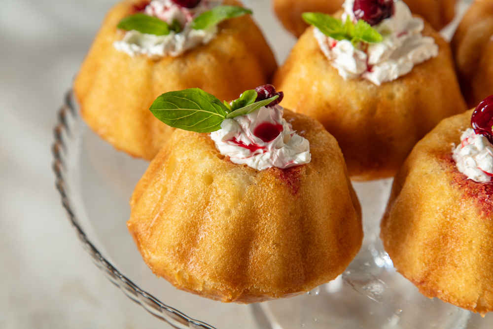 Üzerlerini çırpılmış krema ve vişne taneleriyle süsleyerek servis edin.
