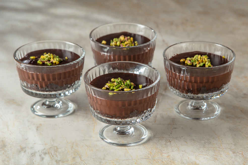 Sunum yapacağınız kaselerin tabanına brownieleri paylaştırın ve bir bardak ya da kaşık yardımıyla üstlerine hafif bastırın.