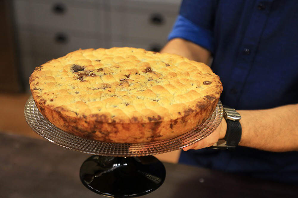 Tava kurabiyenizi bir telin üzerine aktarıp soğumaya bırakın ve dilimleyerek servis edin.