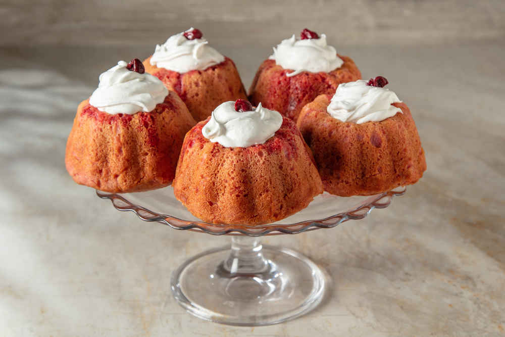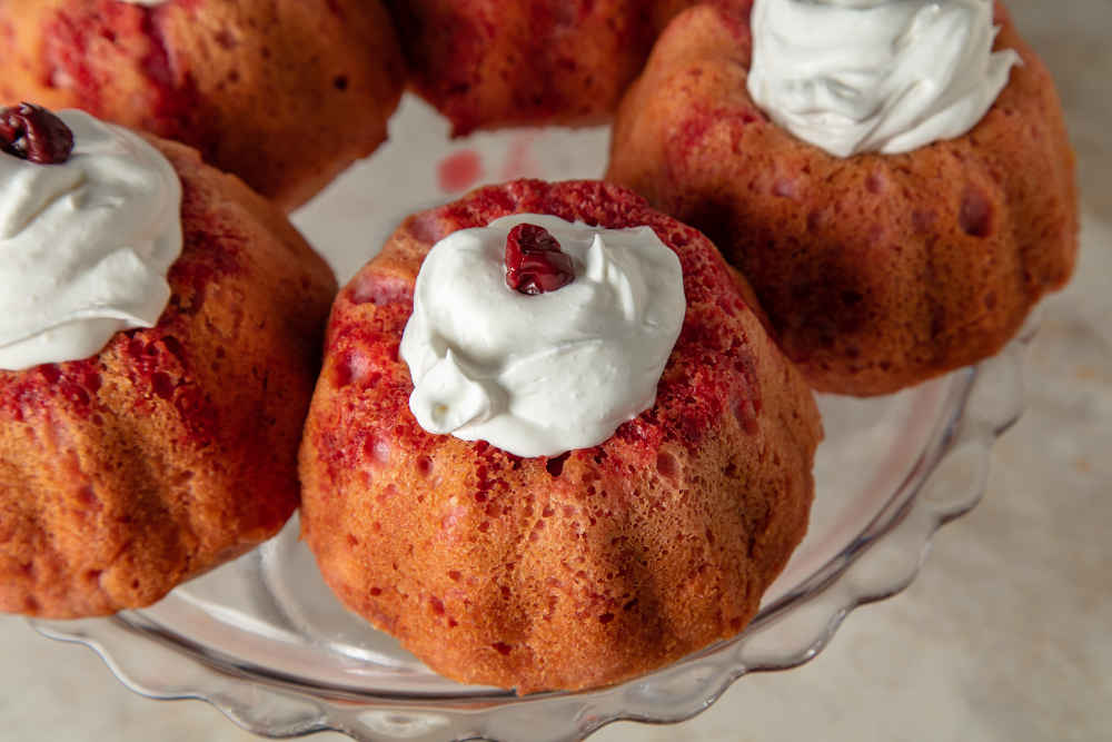Üzerlerini çırpılmış krema ve vişne taneleriyle süsleyerek servis edin.